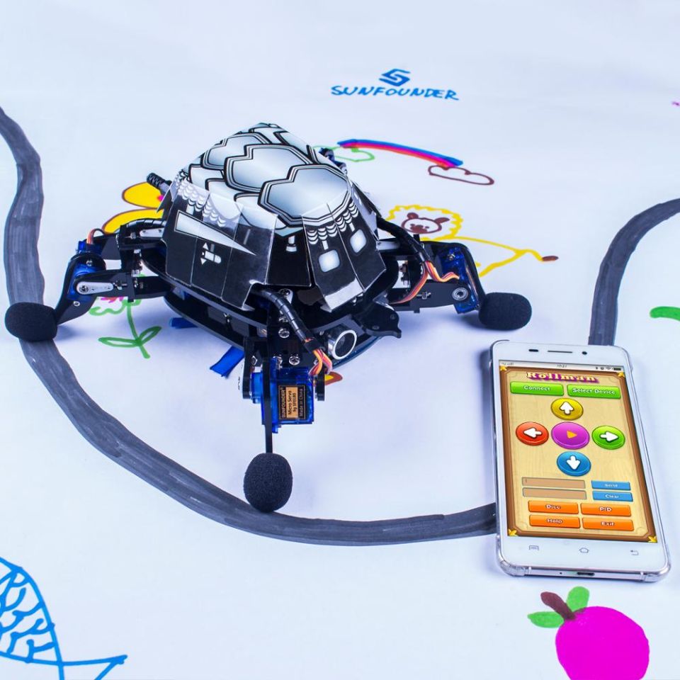 The SunFounder Rollflash is a smart quadruped bionic robot built by acrylic plates. It mimics the tortoise because of its slow speed, and is named Rollflash specially. And the Rollflash Kit proves itself a good learning tool for robotics hobbyists. It needs assembly and provides the code used, so you can improve your hands-on ability and learn programming and mechanics. This cute robot is powerful with the modules onside by programming, like wireless control on Android phone via Bluetooth, dancing, IR line following, obstacle avoiding by ultrasonar, etc. You can explore more interesting functions and bring it to reality by learning!