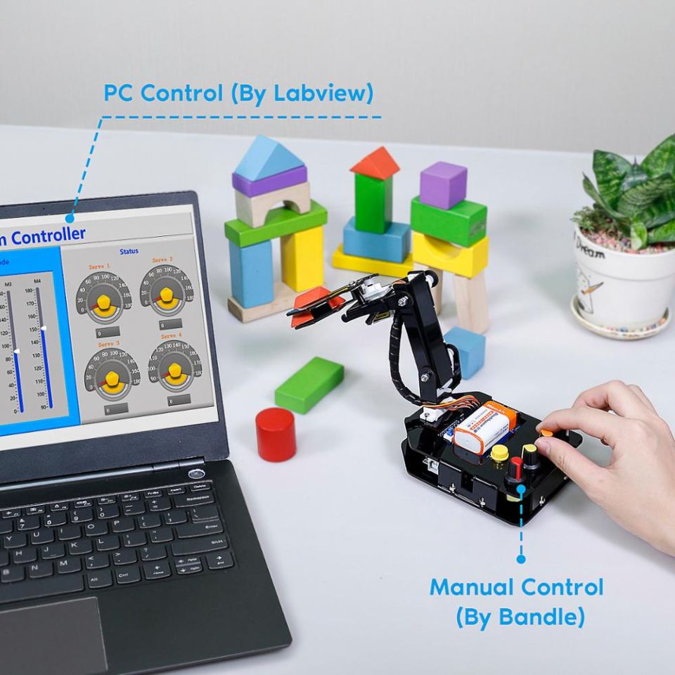 - Convenient Control and Gripper: It’s convenient for you to control the arm robot toys in 2 ways – handle and computer. Grippers have double layers with pointed end and jagged edges which will grab the object firmly.