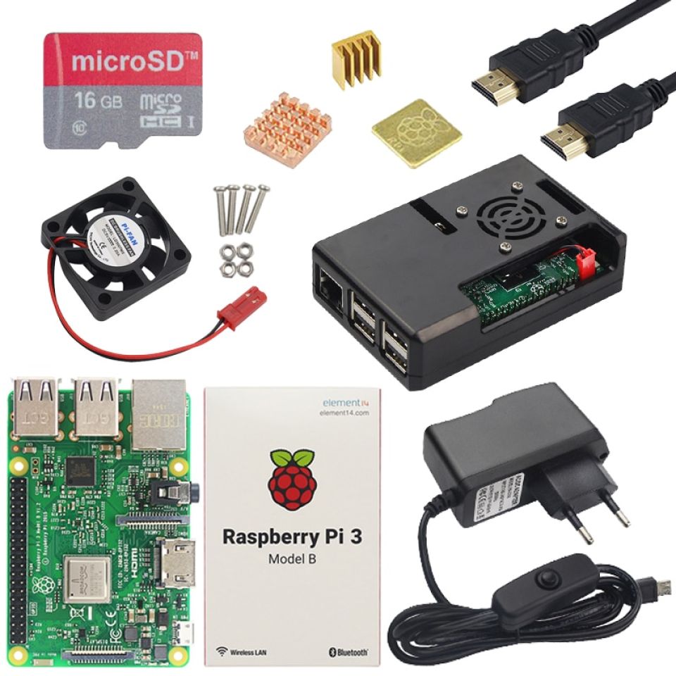 E14 Pi 3b ABS Case Fan Power Heat Sink 16G SD HDMI Cable