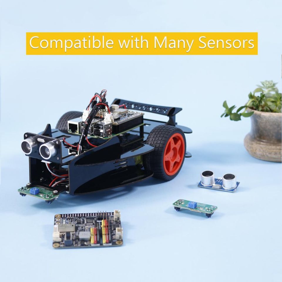 PiMobile is equipped with these basic functions, including remote control, line-following, obstacle avoidance and so on. You can also add other modules to make your car smarter by plugging them into the ports, containing PWM ports, ADC ports, DIGITAL ports, I2C ports and so on.