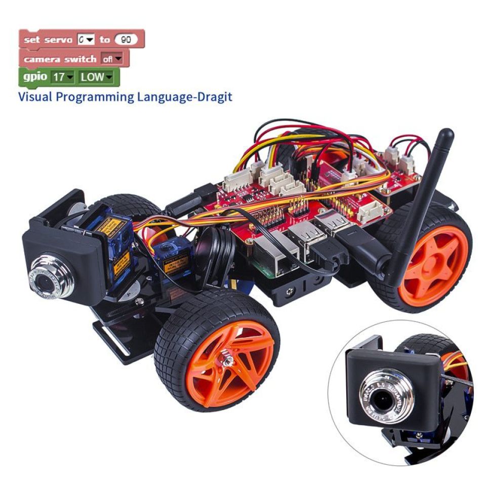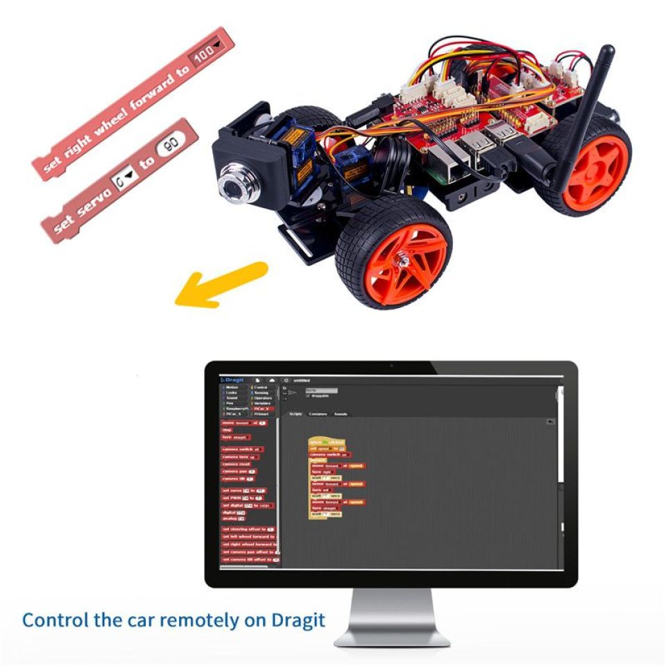 - Python code is provided for the car, and you can also program and debug it with Dragit, a Snap-based graphical interface, by just simple dragging and dropping the code blocks for complex functions.