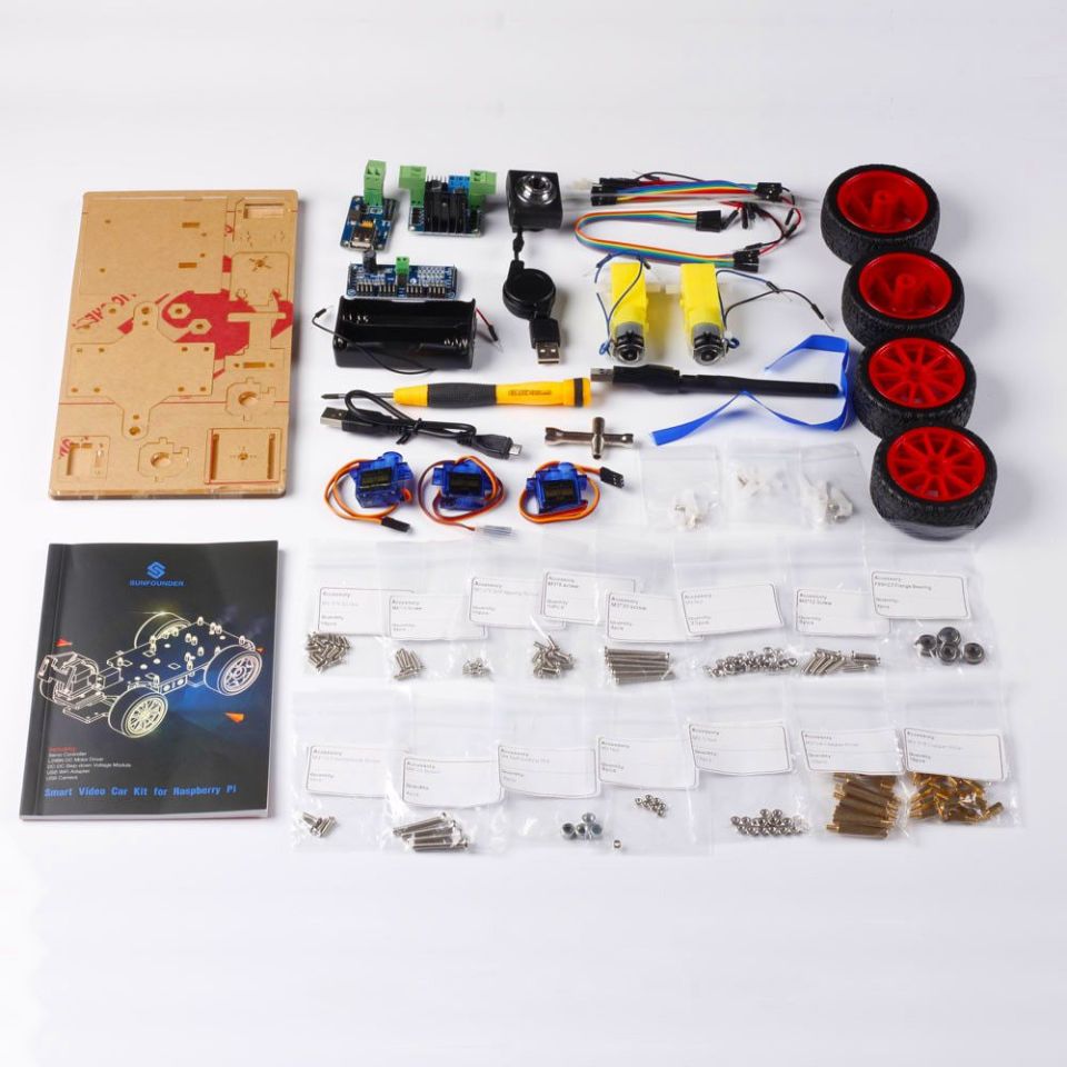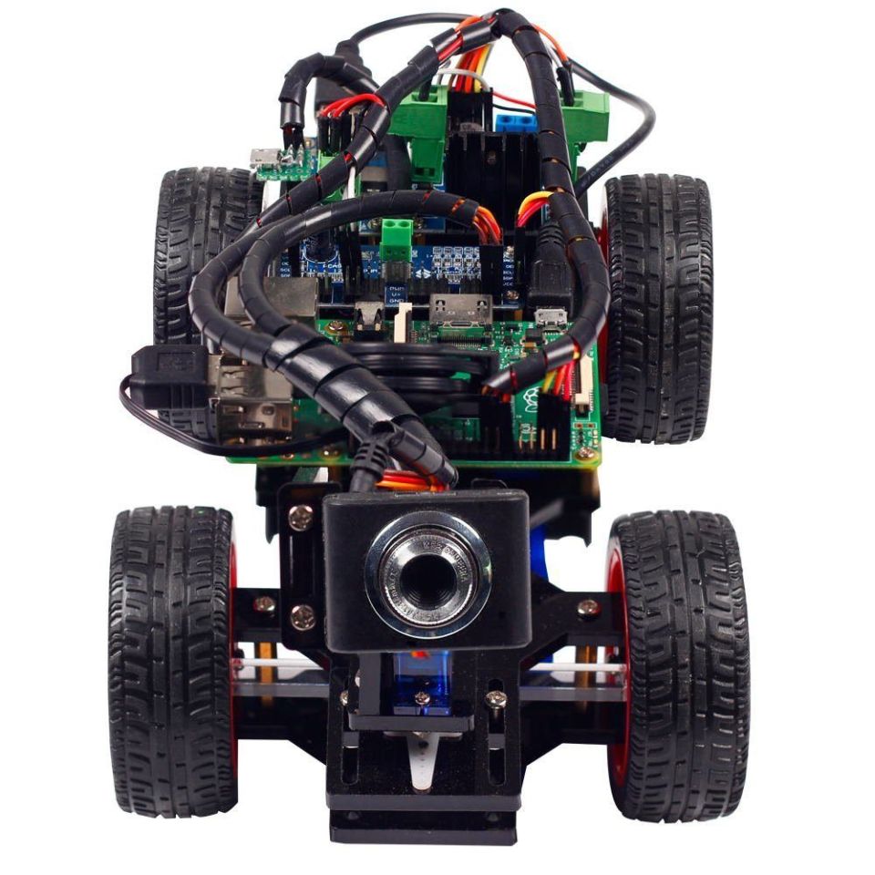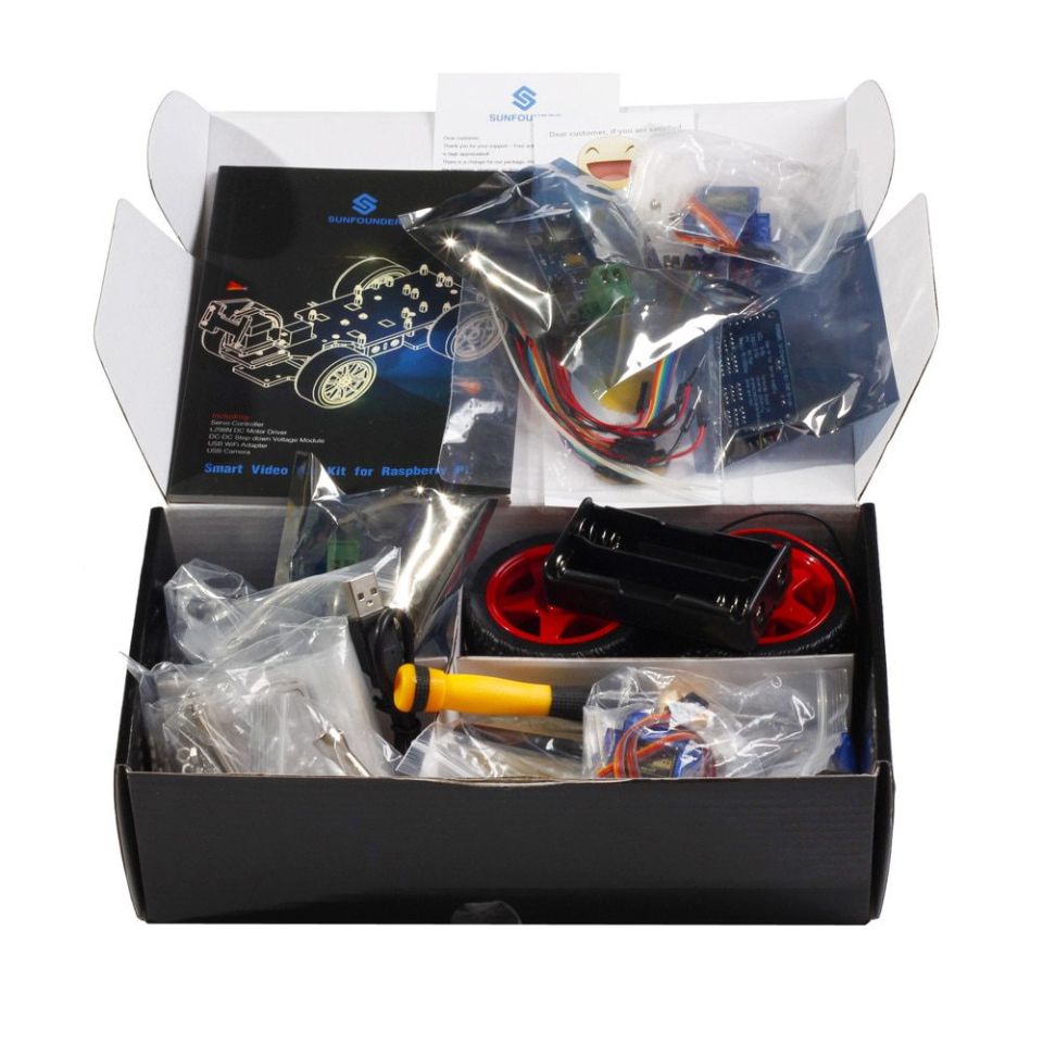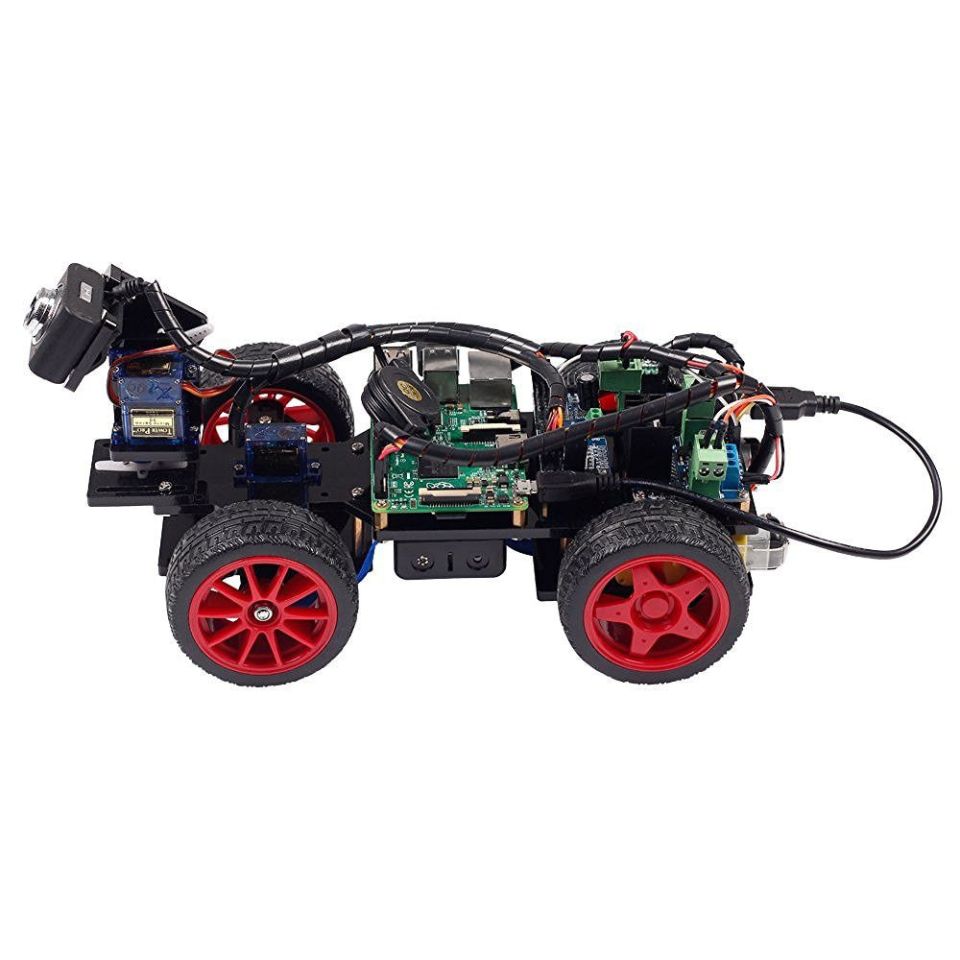 - The Raspberry Pi board (NOT included) is used as control. The kit uses a step-down DC-DC converter module to reduce input voltage and a motor driver module with L298N. Also a webcam is included with a USB Wi-Fi adapter so you can check the video in a real-time manner on your PC or cell phone.